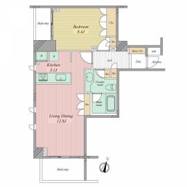 間取り 1LDK 専有面積 55.01m2(16.6坪) 壁芯