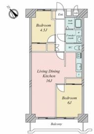 間取り 2LDK 専有面積 65.52m2(19.8坪) 壁芯