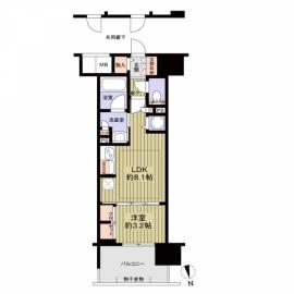間取り 1LDK 専有面積 32.67m2(9.8坪) 壁芯