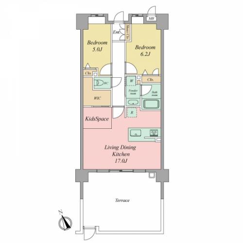 間取り 2LDK 専有面積 65.45m2(19.7坪) 壁芯