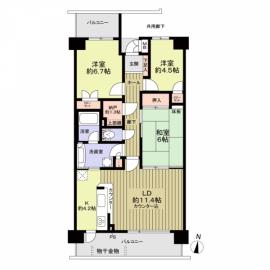 間取り 3LDK 専有面積 76.12m2(23.0坪) 壁芯