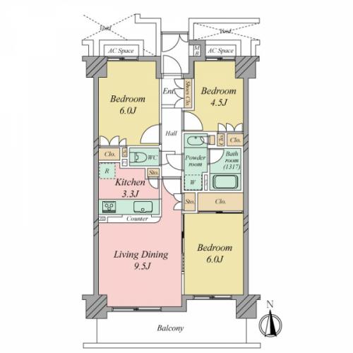 間取り 3LDK 専有面積 64.04m2(19.3坪) 壁芯