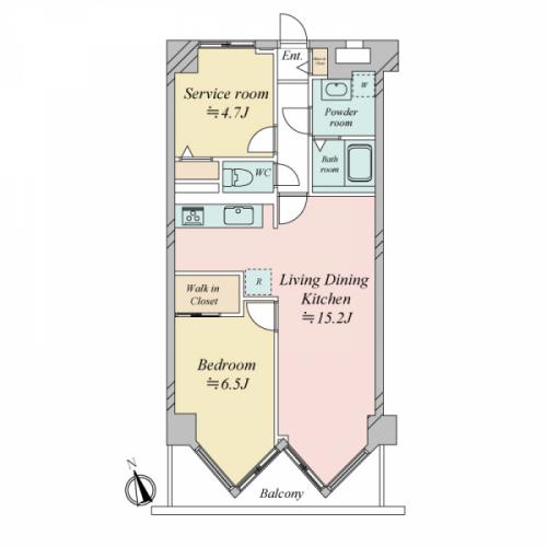 間取り 1SLDK 専有面積 57.88m2(17.5坪) 壁芯