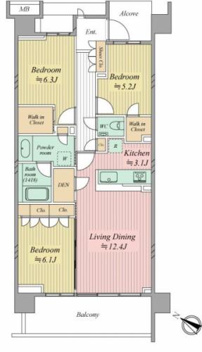 間取り 3LDK 専有面積 78.60m2(23.7坪) 壁芯
