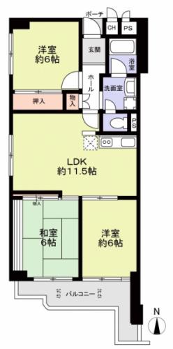 間取り 3LDK 専有面積 69.42m2(20.9坪) 壁芯