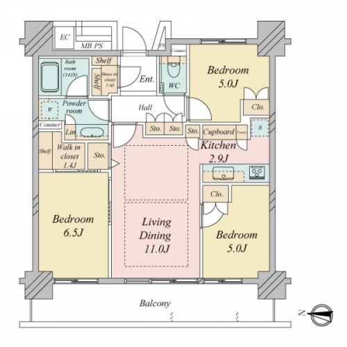 間取り 3LDK 専有面積 72.03m2(21.7坪) 壁芯