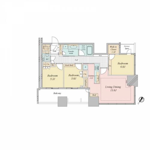 間取り 3LDK 専有面積 78.73m2(23.8坪) 壁芯