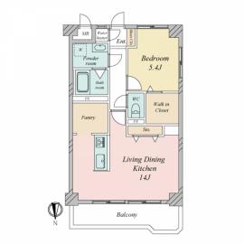 間取り 1LDK 専有面積 47.85m2(14.4坪) 壁芯