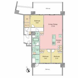 間取り 3LDK 専有面積 83.50m2(25.2坪) 壁芯