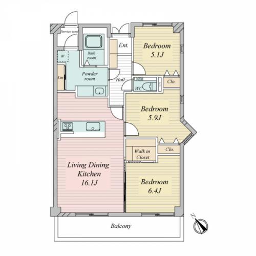 間取り 3LDK 専有面積 75.03m2(22.6坪) 壁芯