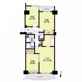 間取り 3LDK 専有面積 76.48m2(23.1坪) 壁芯