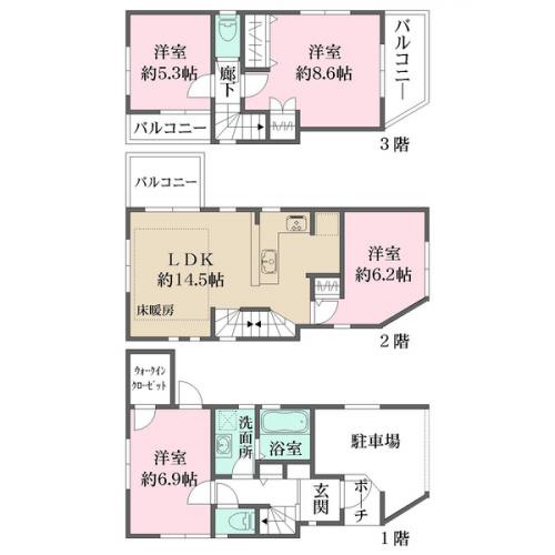 土地面積 66.24m2(20.0坪) 登記簿 建物延面積 94.19m2