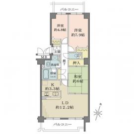 間取り 3LDK 専有面積 75.71m2(22.9坪) 壁芯