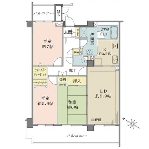 間取り 3LDK 専有面積 75.05m2(22.7坪) 壁芯