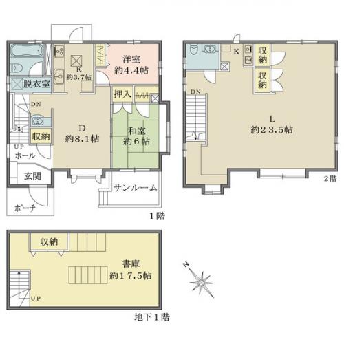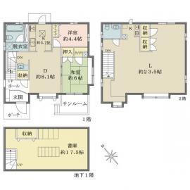 備考 ◇三菱地所ホーム施工◇陽当り・通風良好。広々とした書庫付き。 1階部分間取り:2DK2階部分間取り:1LDK地下:書庫17.53帖一部構造(RC造)