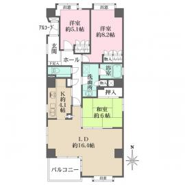 間取り 3LDK 専有面積 91.09m2(27.5坪) 壁芯