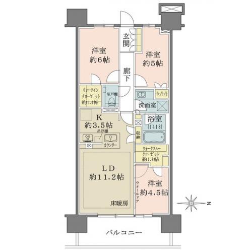 バルコニー 11.80m2 主要採光方向
