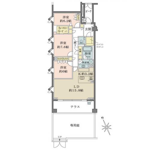 間取り 3LDK 専有面積 96.56m2(29.2坪) 壁芯