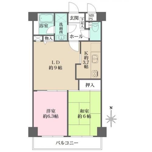 間取り 2LDK 専有面積 56.00m2(16.9坪) 壁芯