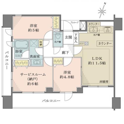 バルコニー 20.60m2 主要採光方向 南東