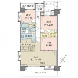 間取り 3LDK 専有面積 80.11m2(24.2坪) 壁芯