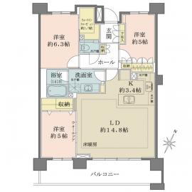 間取り 3LDK 専有面積 78.54m2(23.7坪) 壁芯