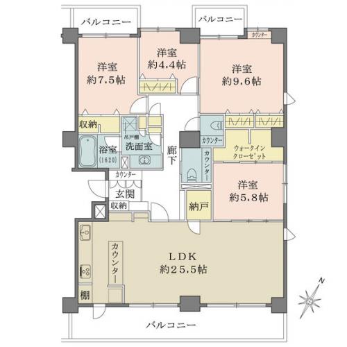 間取り 4LDK 専有面積 130.05m2(39.3坪) 壁芯