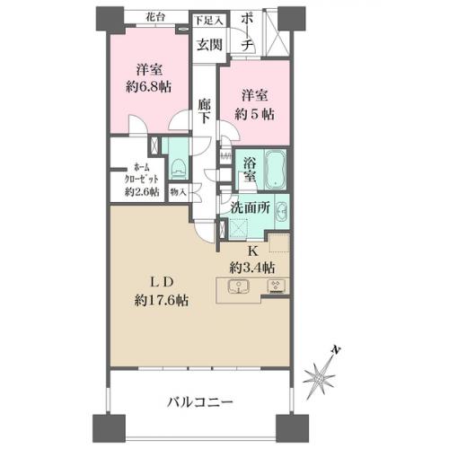 間取り 2LDK 専有面積 76.19m2(23.0坪) 壁芯