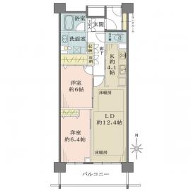間取り 2LDK 専有面積 66.98m2(20.2坪) 壁芯