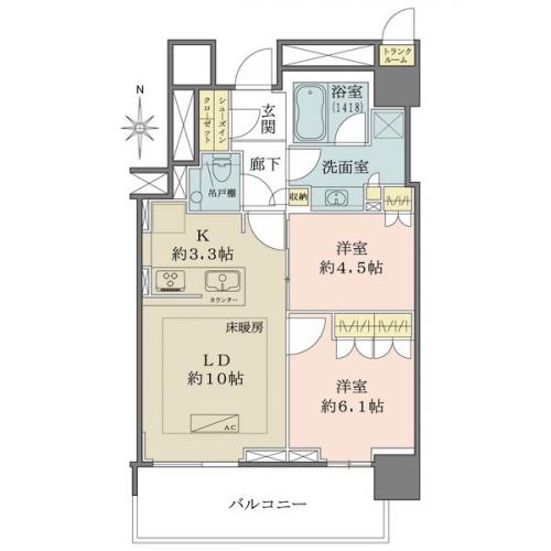 間取り 2LDK 専有面積 58.31m2(17.6坪) 壁芯