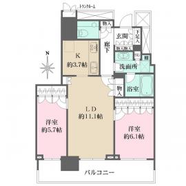 備考 バルコニーより晴海運河レインボーブリッジを望む(天候による) 専有面積には、トランクルーム面積0.59m2が含まれます。