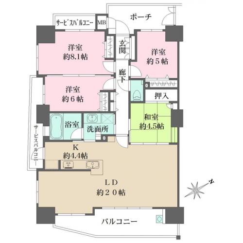 間取り 4LDK 専有面積 101.39m2(30.6坪) 壁芯