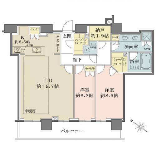 間取り 2LDK 専有面積 101.82m2(30.8坪) 壁芯