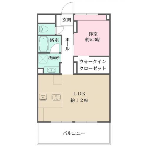 間取り 1LDK 専有面積 45.36m2(13.7坪) 壁芯
