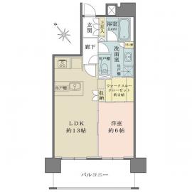 間取り 1LDK 専有面積 49.18m2(14.8坪) 壁芯
