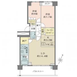 間取り 2LDK 専有面積 72.80m2(22.0坪) 壁芯