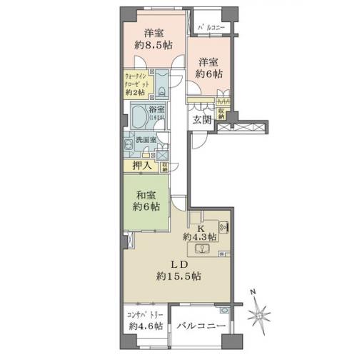 間取り 3LDK 専有面積 104.79m2(31.6坪) 壁芯