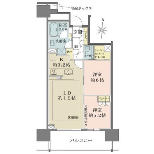 間取り 2LDK 専有面積 61.67m2(18.6坪) 壁芯