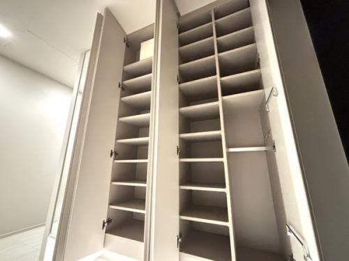 • 靴のみならず、ベビーカーやスポーツ用品の保管も可能な広々とした玄関です。