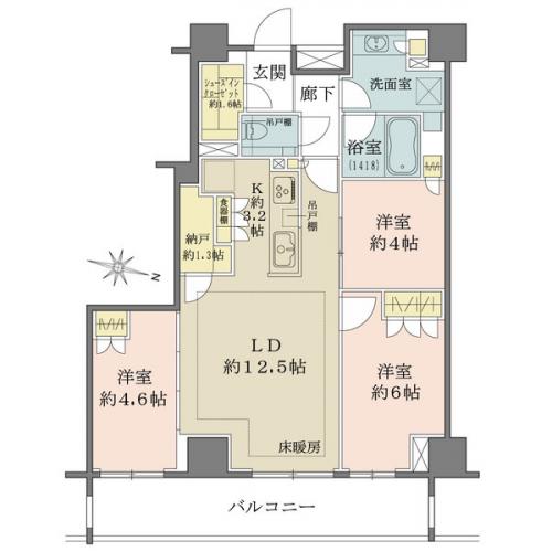 間取り 3LDK 専有面積 70.74m2(21.3坪) 壁芯