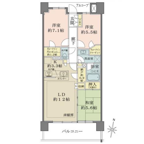 バルコニー 12.60m2 主要採光方向