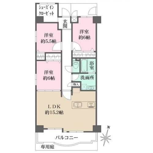 間取り 3LDK 専有面積 76.05m2(23.0坪) 壁芯