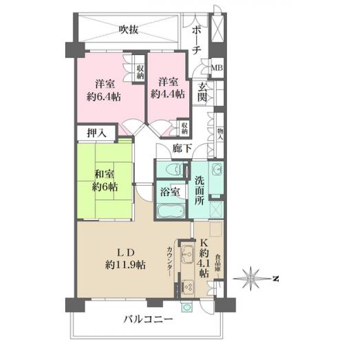 間取り 3LDK 専有面積 77.58m2(23.4坪) 壁芯