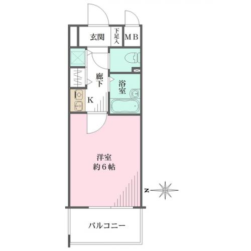間取り 1K 専有面積 18.90m2(5.7坪) 壁芯