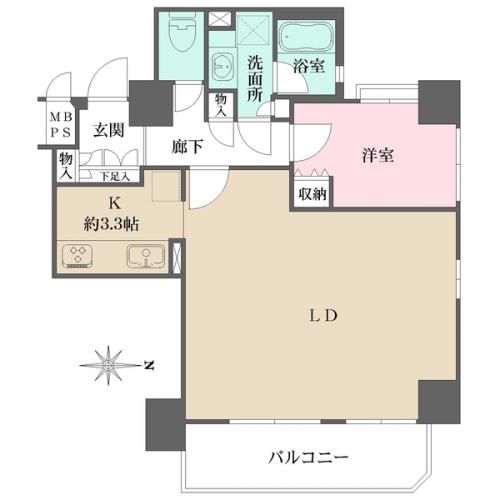 間取り 1LDK 専有面積 58.72m2(17.7坪)