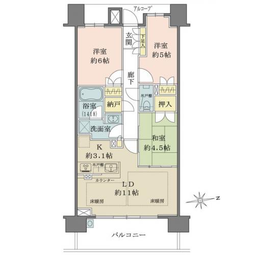 間取り 3LDK 専有面積 67.81m2(20.5坪) 壁芯