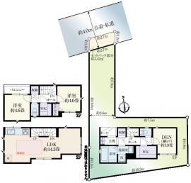 土地面積 77.84m2(23.5坪) 登記簿 別途私道負担3.42m2 建物延面積 72.35m2