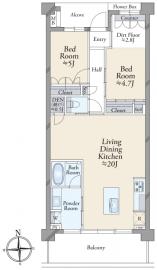 間取り 2SLDK 専有面積 71.76m2(21.7坪) 壁芯