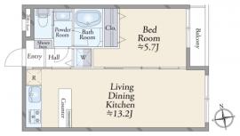 間取り 1LDK 専有面積 41.04m2(12.4坪) 壁芯