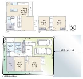 土地面積 124.47m2(37.6坪) 実測 建物延面積 122.54m2
